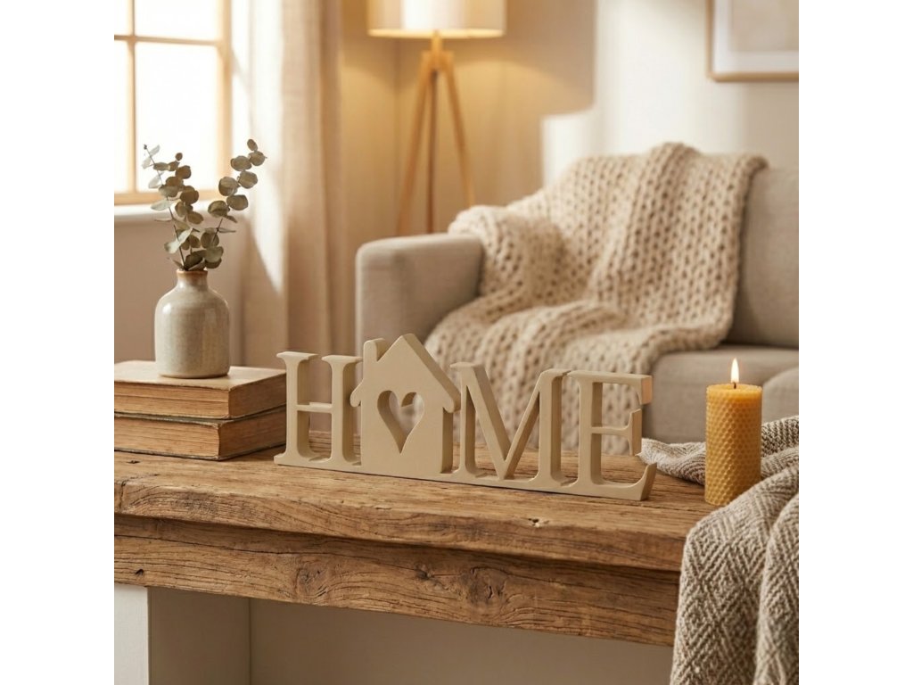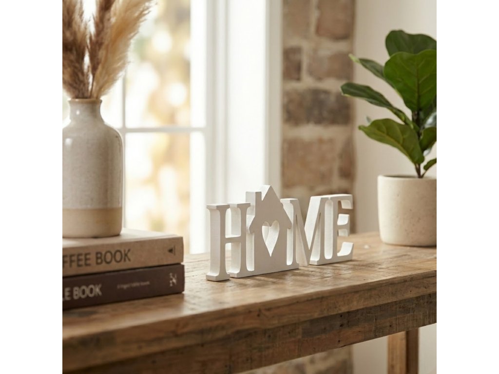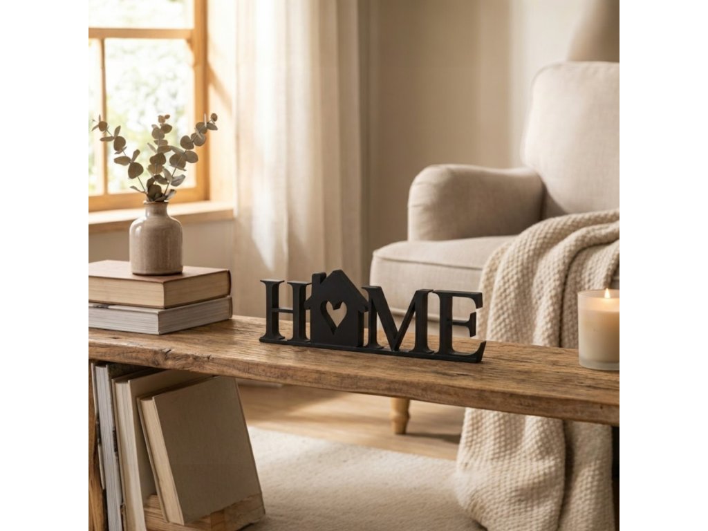 Dekorace HOME s domečkem z PLA plastu – moderní nápis do bytu