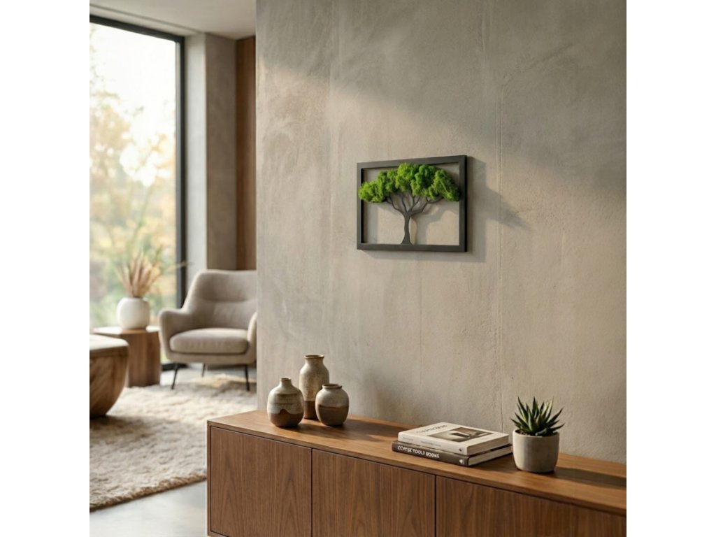 Elegantní nástěnný rámeček s motivem bonsaje, který dodá interiéru harmonii a moderní vzhled. Stylová dekorace do obývacího pokoje, ložnice i kanceláře. Možnost doplnění dekorativním mechem (není součástí balení). Dostupný v bílé i černé barvě.