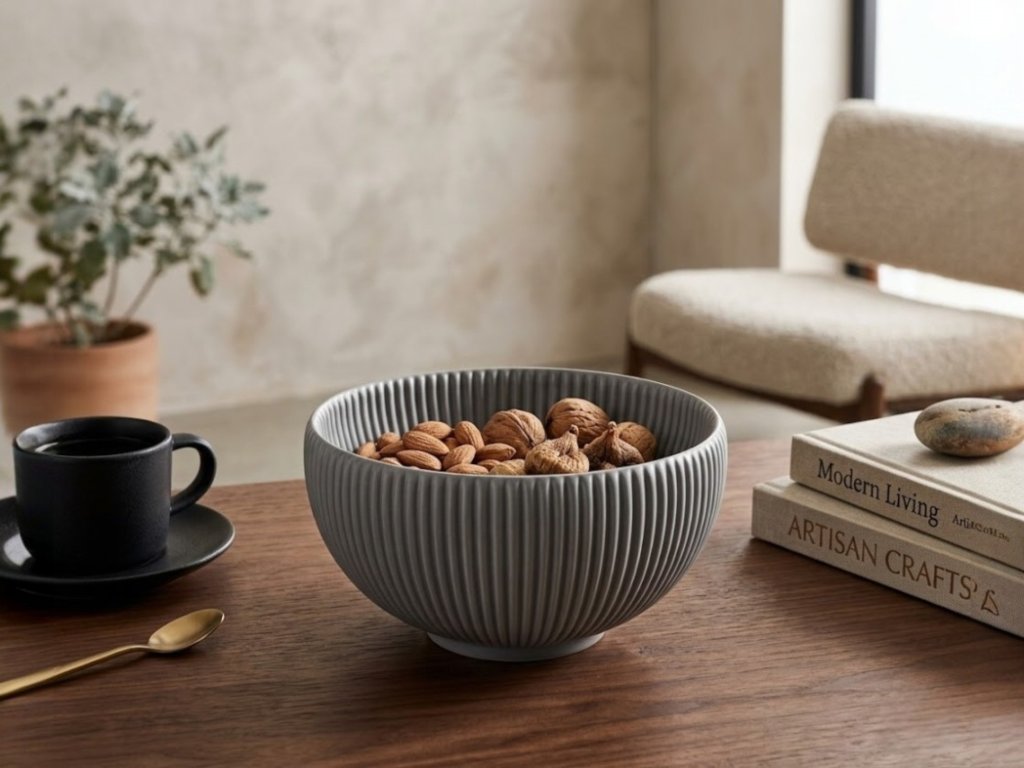 Dodejte svému domovu moderní a elegantní vzhled s touto stylovou dekorativní miskou s jemným vroubkovaným designem. Minimalistický tvar a čisté linie z ní dělají perfektní doplněk do moderních, skandinávských i minimalistických interiérů. Miska se skvěle hodí jako dekorace na jídelní stůl, konferenční stolek nebo komodu.