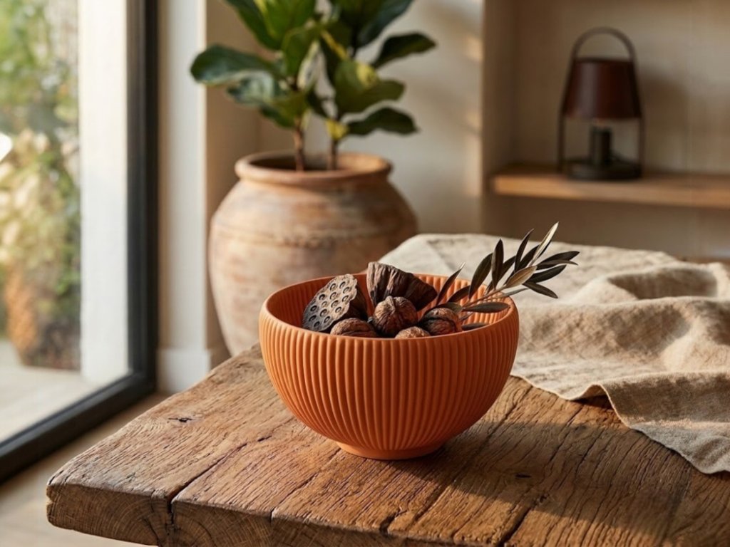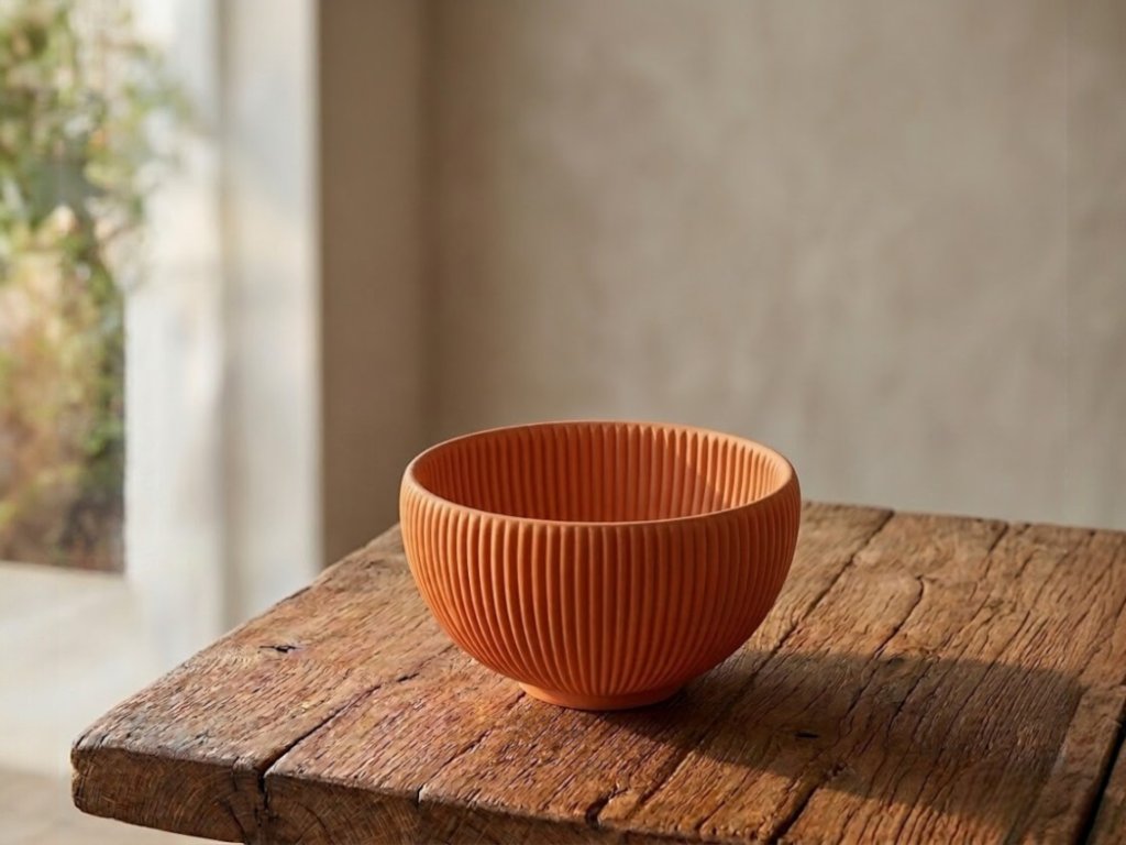 Elegantní dekorativní miska s moderním vroubkovaným designem vyrobená z ekologického PLA plastu. Stylový doplněk do interiéru, ideální jako mísa na ovoce, dekorace na stůl nebo originální dárek ke kolaudaci.