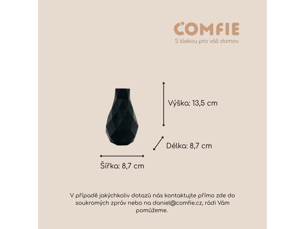 Designová váza Comfie je moderní interiérový doplněk, který zaujme na první pohled svým výrazným geometrickým tvarem. Čisté linie a minimalistické provedení dodají vašemu stolu, polici či komodě sofistikovaný a nadčasový vzhled.