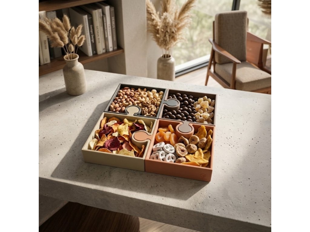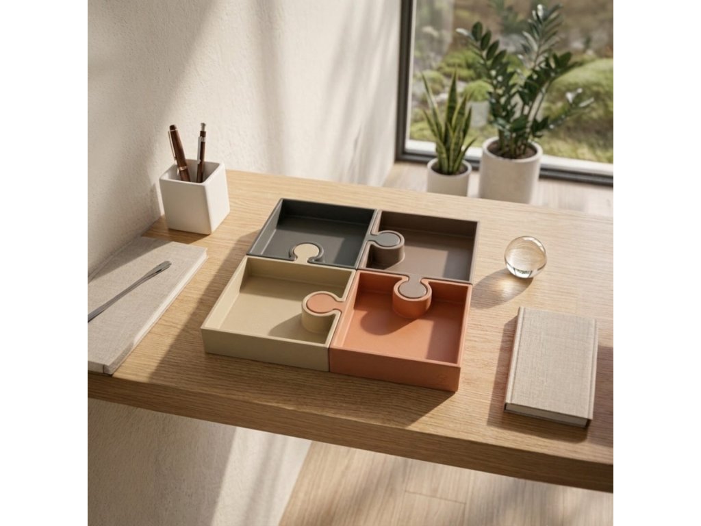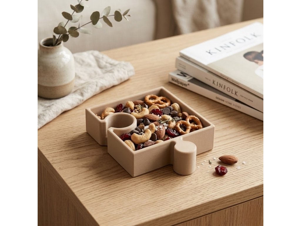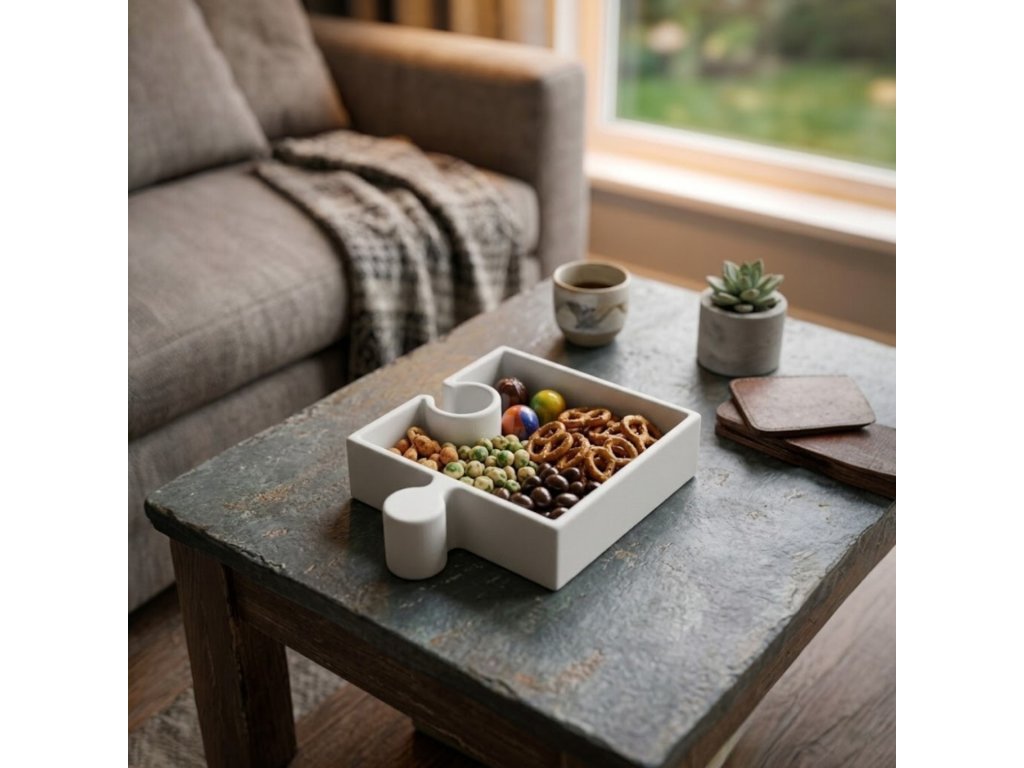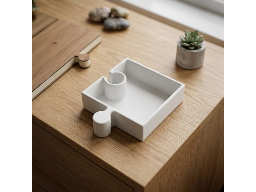 Originální designová miska ve tvaru dílku puzzle, kterou lze spojovat s dalšími miskami. Stylová dekorace a praktický organizér do moderní domácnosti.