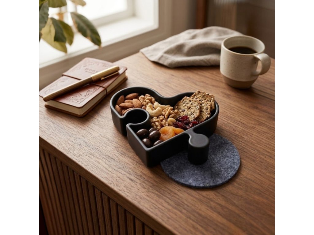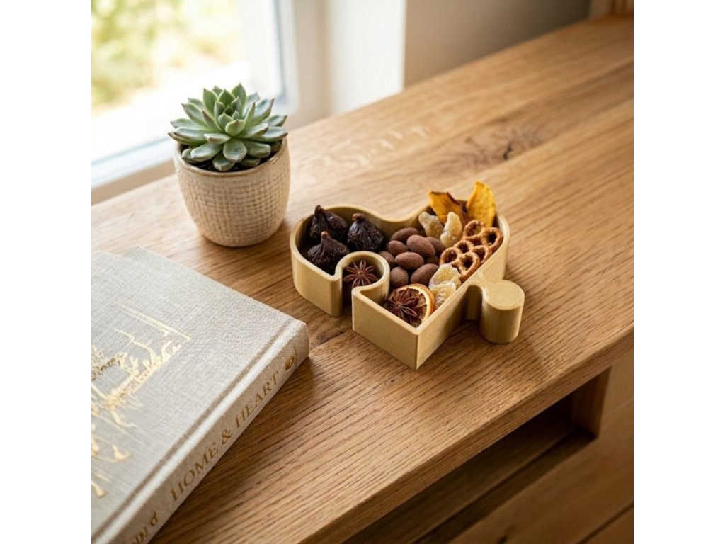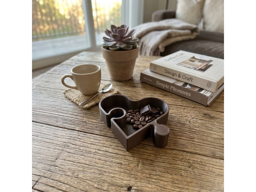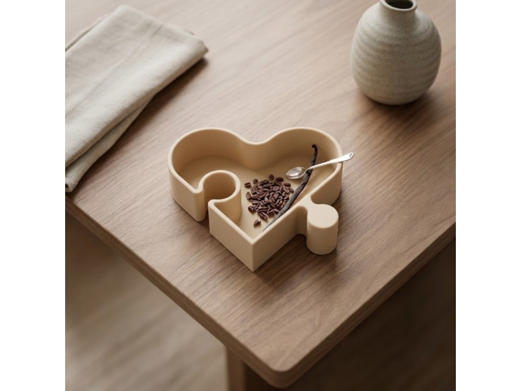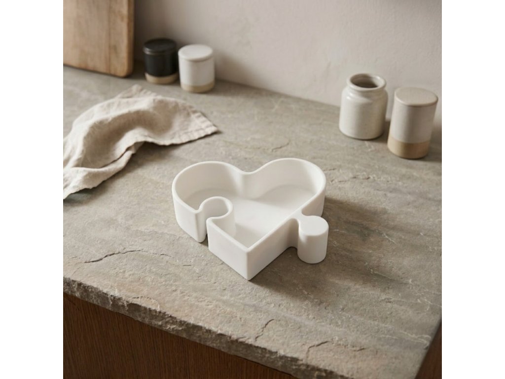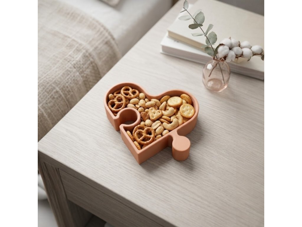 Originální miska ve tvaru srdce s puzzle designem, kterou lze spojovat s dalšími miskami. Stylová dekorace na stůl i praktická miska na snacky nebo drobnosti.