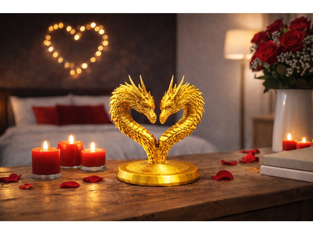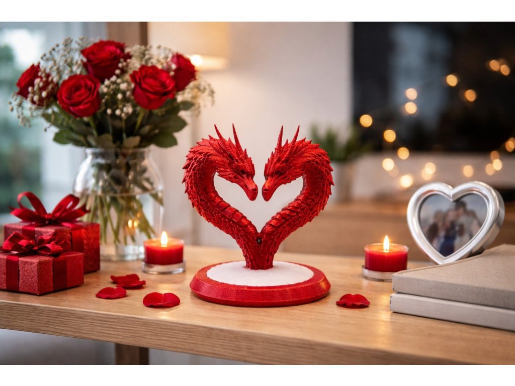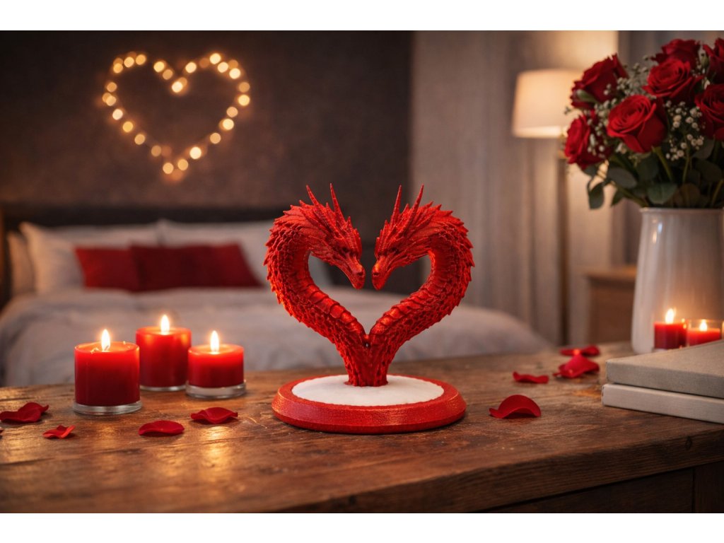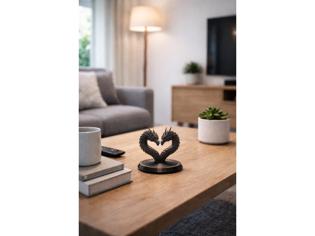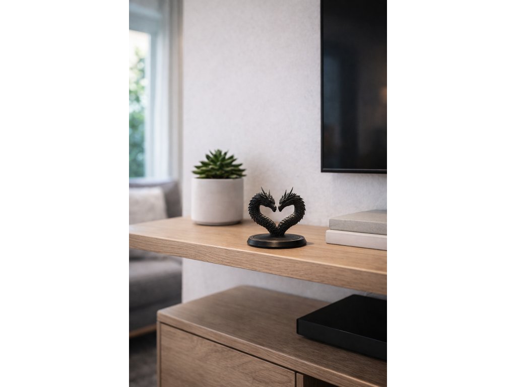 Originální dekorace ve tvaru srdce vytvořeného dvěma draky. Symbol lásky, síly a spojení – ideální valentýnský dárek i stylový doplněk do interiéru.