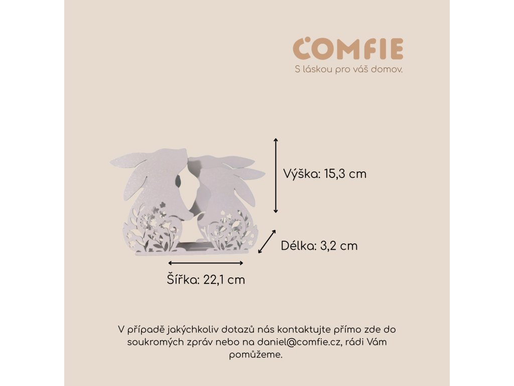 Vneste do svého domova kouzlo jara s elegantním držákem na ubrousky Comfie v designu roztomilých zajíčků. Jemné linie, přírodní motiv a čistý vzhled z něj dělají ideální doplněk na velikonoční stůl, který potěší rodinu i hosty na první pohled.
