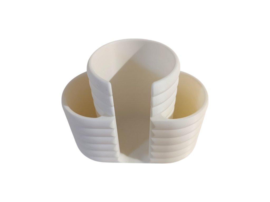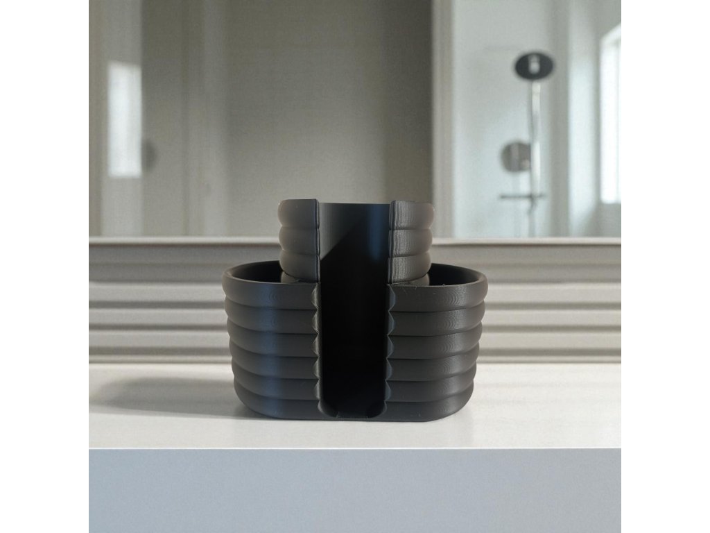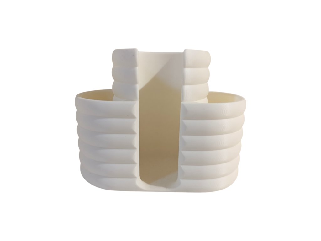 Vyrobeno z kvalitního a pevného PLA materiálu. Držák je lehký, ale zároveň dostatečně stabilní a snadno omyvatelný. Praktický tip – ideální také jako dárek pro milovníky pořádku a designu!