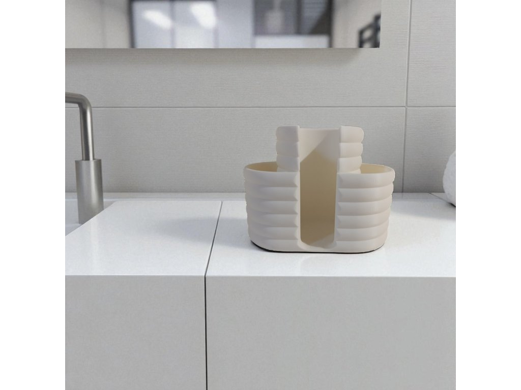 Tento designový držák na kosmetické vatové polštářky a uchošťoury je ideálním řešením pro ty, kteří chtějí mít svou koupelnu nejen organizovanou, ale i esteticky sladěnou. Držák je rozdělen na tři části – centrální prostor pro vatové tampony a dvě boční kapsy pro tyčinky do uší. Díky minimalistickému a modernímu designu perfektně zapadne do každého interiéru – od klasických koupelen až po moderní domácí lázně.
