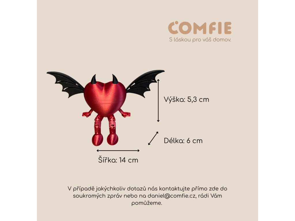 Roztomilé, ale lehce ďábelské flexi srdíčko s pohyblivými nožičkami. Originální dekorace nebo netradiční dárek k Valentýnu, výročí i jen tak z lásky.