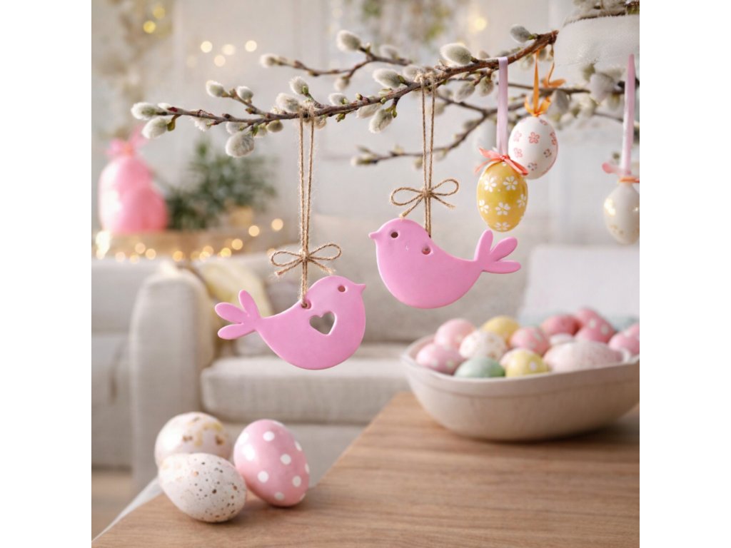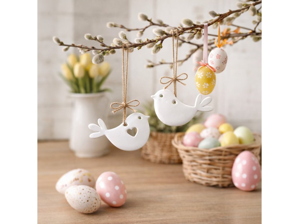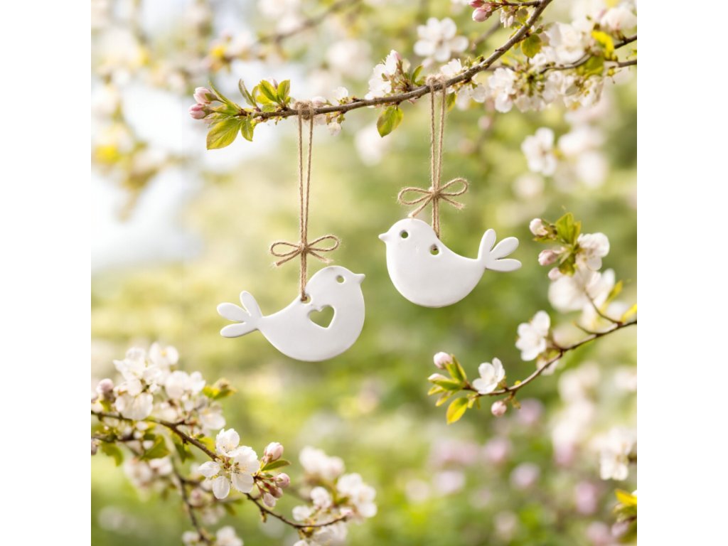 Vneste do svého domova nádech jara s touto elegantní dekorací ptáčků k zavěšení. Jemné linie, jednoduchý tvar a srdíčkový detail dělají z této dekorace krásný doplněk pro jarní období, Velikonoce i celoroční minimalistickou výzdobu.