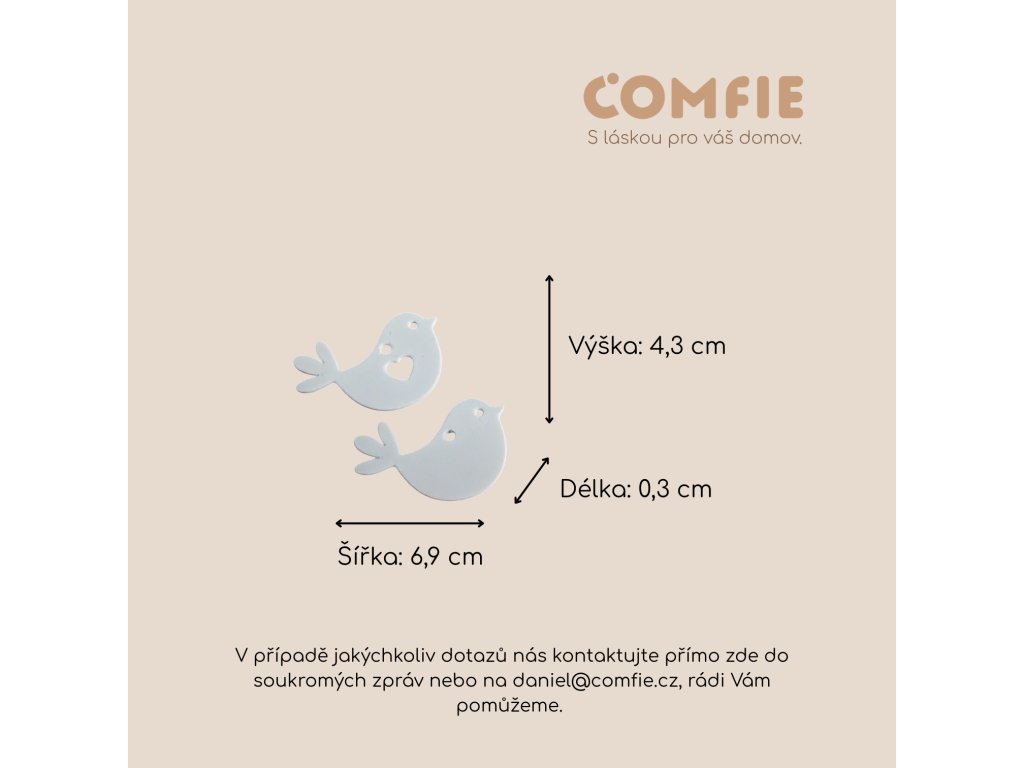 Comfie je značka, která vnáší do domova pohodlí, styl a radost z maličkostí. Zaměřujeme se na originální bytové dekorace, dárky a doplňky, které mají nejen krásný design, ale i duši. Každý produkt v naší nabídce je pečlivě vybírán tak, aby potěšil oko, rozehřál srdce a dotvářel atmosféru domova, kde se cítíte opravdu dobře.