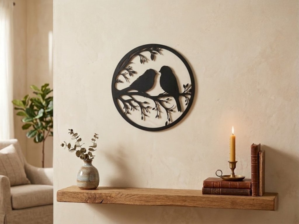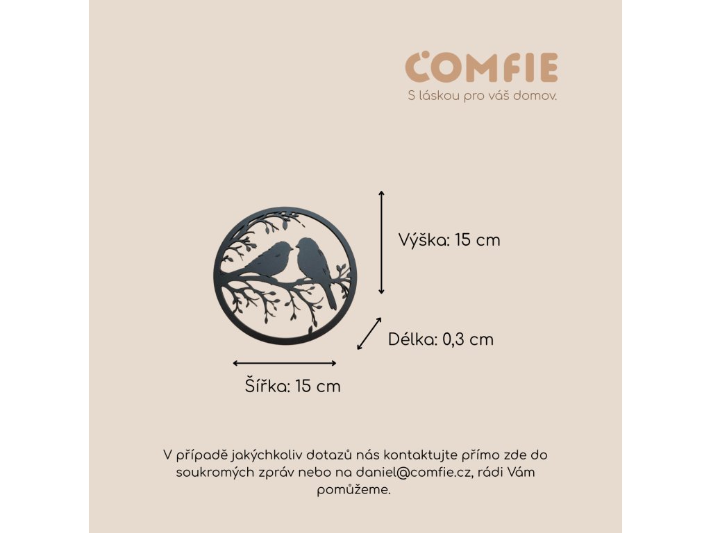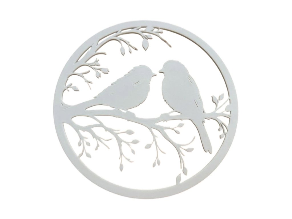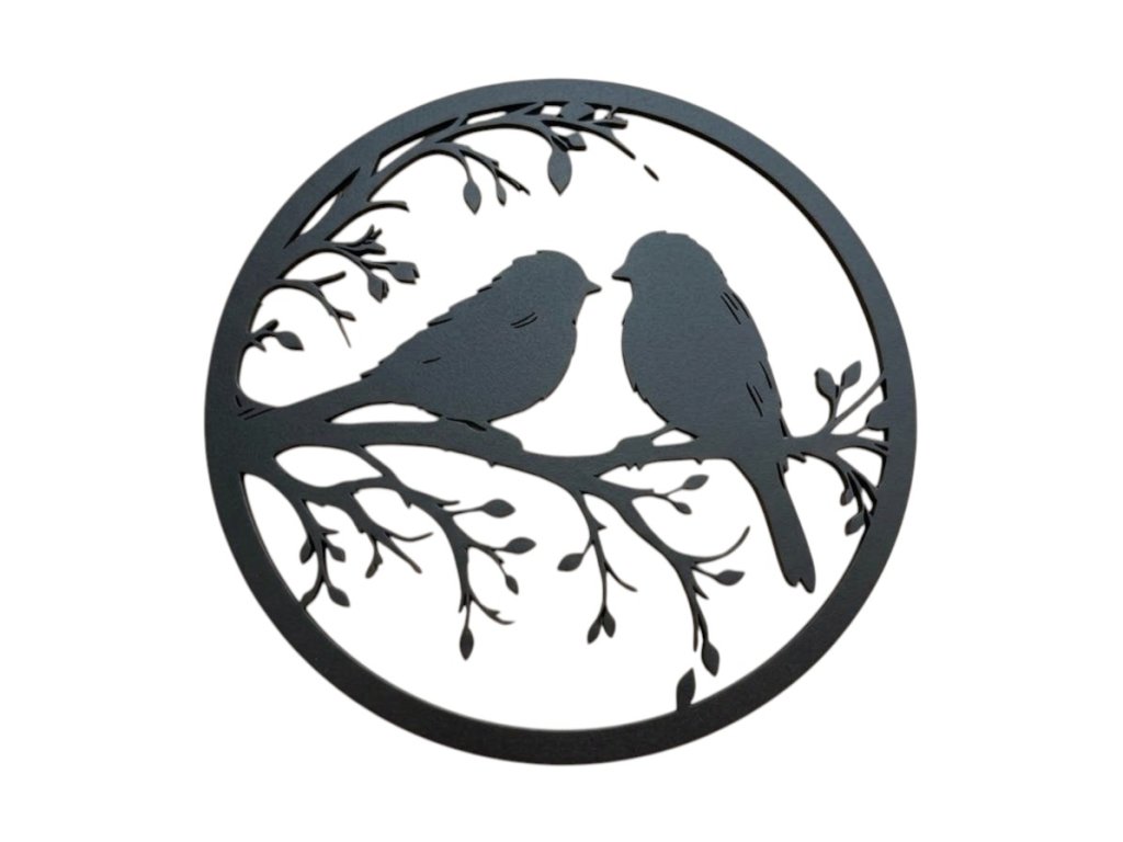 Tato krásná nástěnná dekorace s motivem dvou ptáčků na větvi přináší do vašeho domova klidnou a harmonickou atmosféru inspirovanou přírodou. Jemný kruhový design působí moderně a zároveň nadčasově, díky čemuž se skvěle hodí do různých stylů interiéru – od minimalistického až po skandinávský.