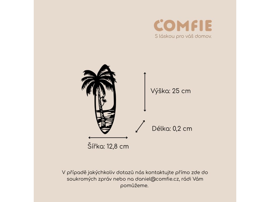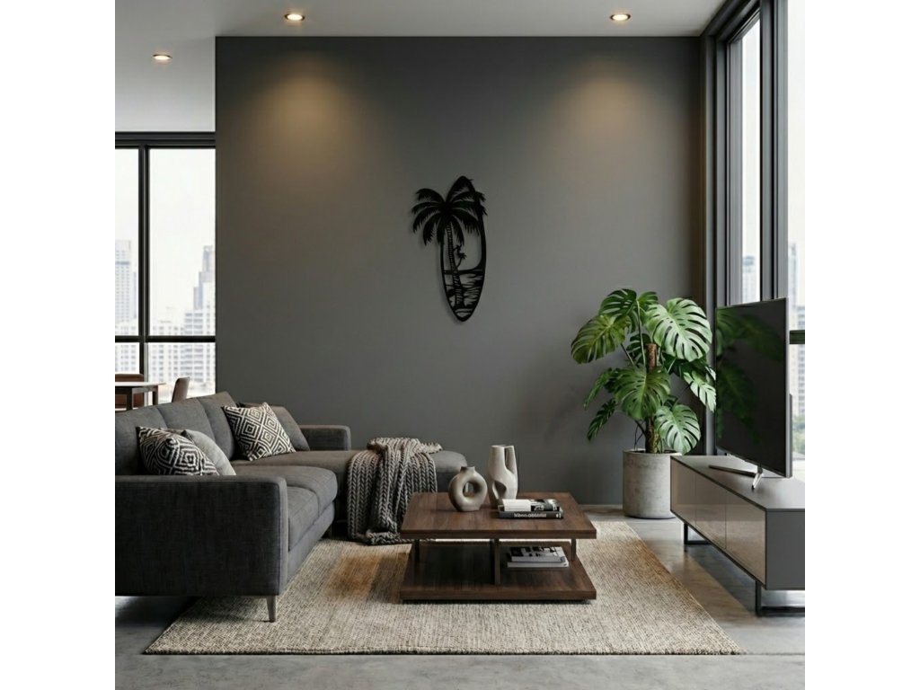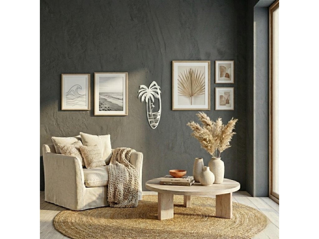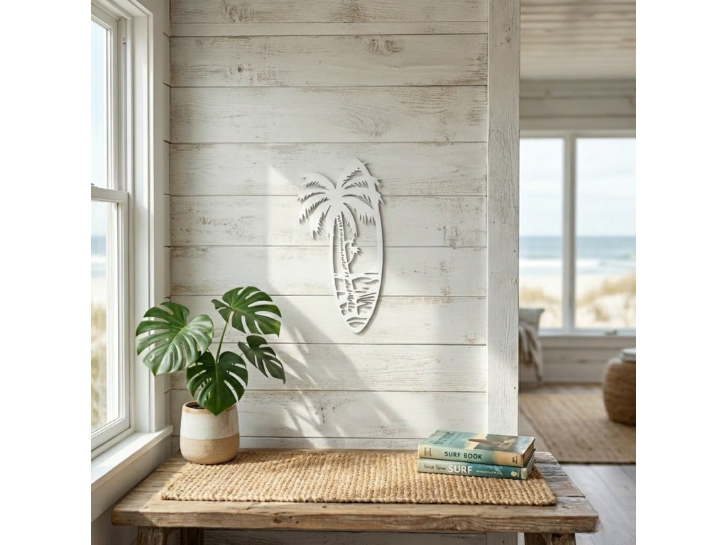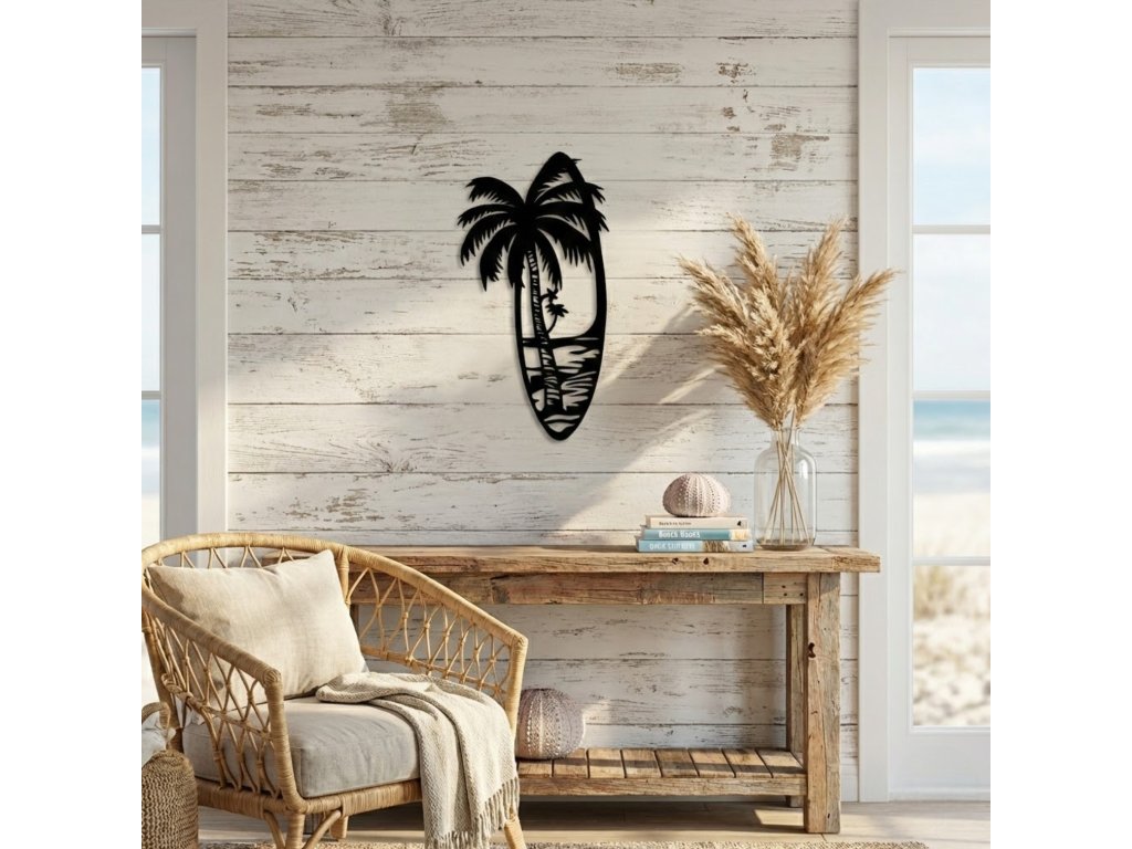 Vneste do svého domova kousek oceánu. Nástěnná dekorace ve tvaru surfového prkna s motivem palmy je perfektním doplňkem pro všechny, kteří milují pláž, surfování a bezstarostnou letní atmosféru. Minimalistické provedení působí moderně a elegantně, a přesto dodá interiéru jedinečný charakter.