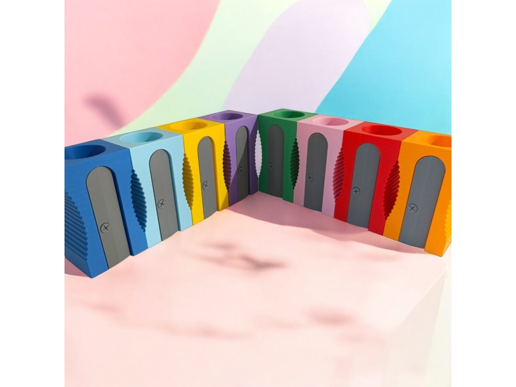 Stylový a praktický stojan na tužky ve tvaru ořezávátka. Vytištěno na 3D tiskárně z ekologického PLA plastu. Perfektní jako dárek pro učitele, dárky do školy nebo jako stolní organizér do kanceláře i dětského pokoje.