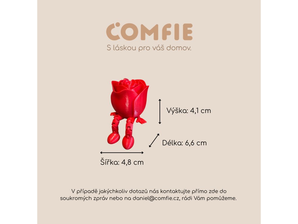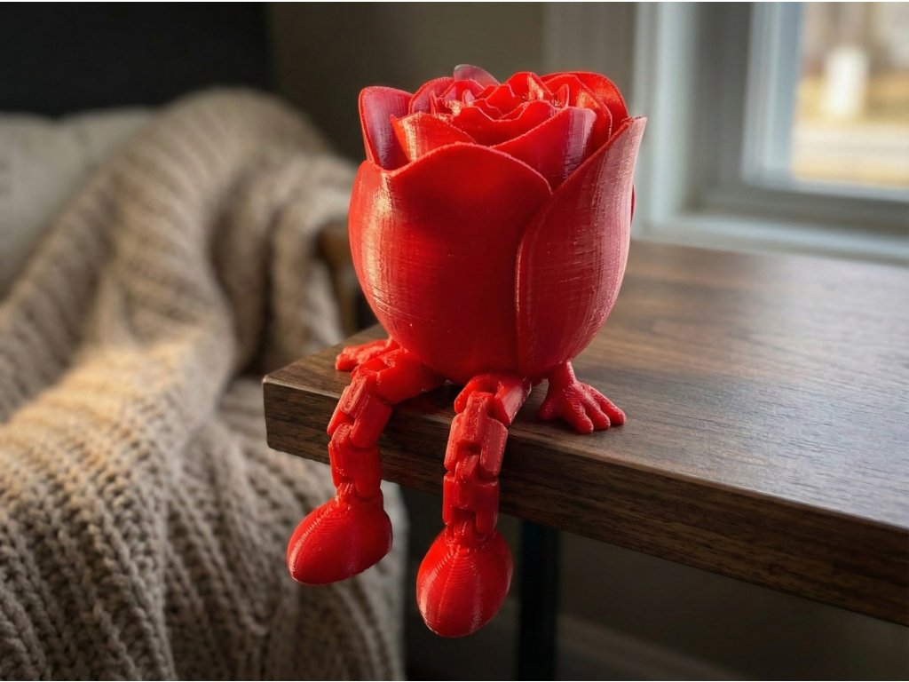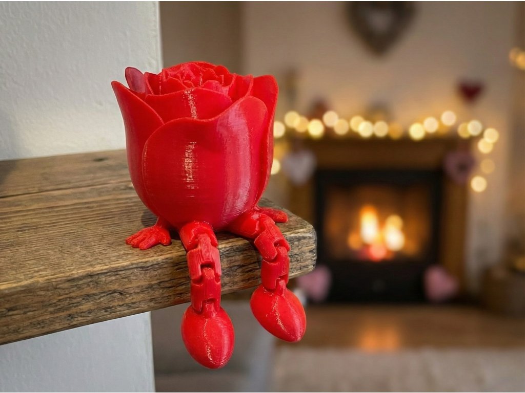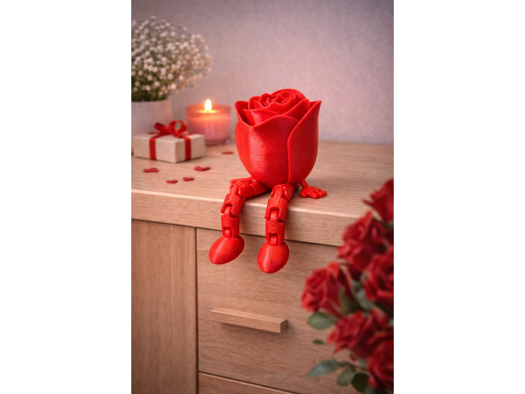 Roztomilá 3D tištěná růže, která má nožičky! Tato flexi figurka sedí na poličce a dělá radost jako netradiční dekorace i antistresová hračka. Perfektní drobný dárek k Valentýnu nebo Dni matek.