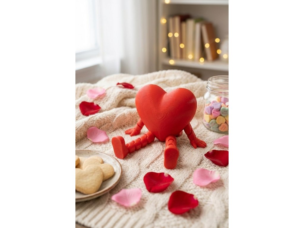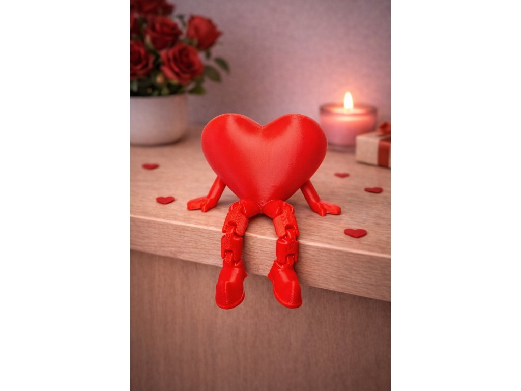 Roztomilé 3D tištěné srdíčko s pohyblivými nožičkami a ručičkami. Ideální "parťák" na poličku, monitor nebo pracovní stůl a originální hravý dárek k Valentýnu.