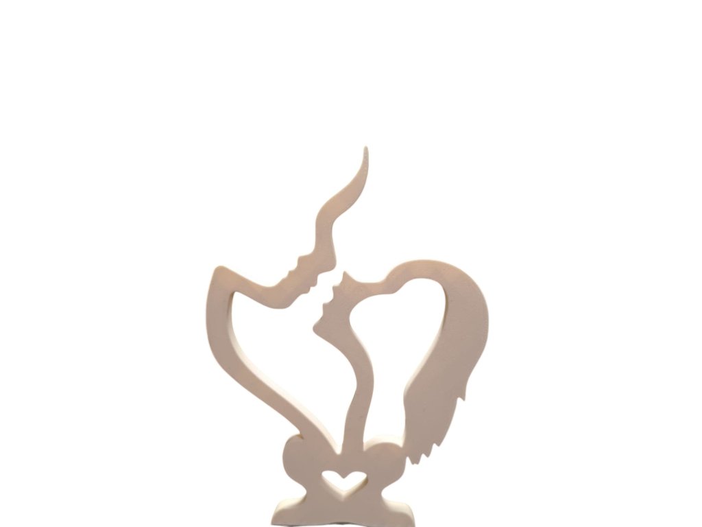 Tato romantická soška zachycující dva milence při polibku je jemným a nadčasovým symbolem lásky, porozumění a hlubokého citu. Minimalistické provedení v bílé barvě působí elegantně a snadno zapadne do moderního i klasického interiéru. Křivky siluet vytvářejí srdce, které ještě více podtrhuje emoci celého motivu.