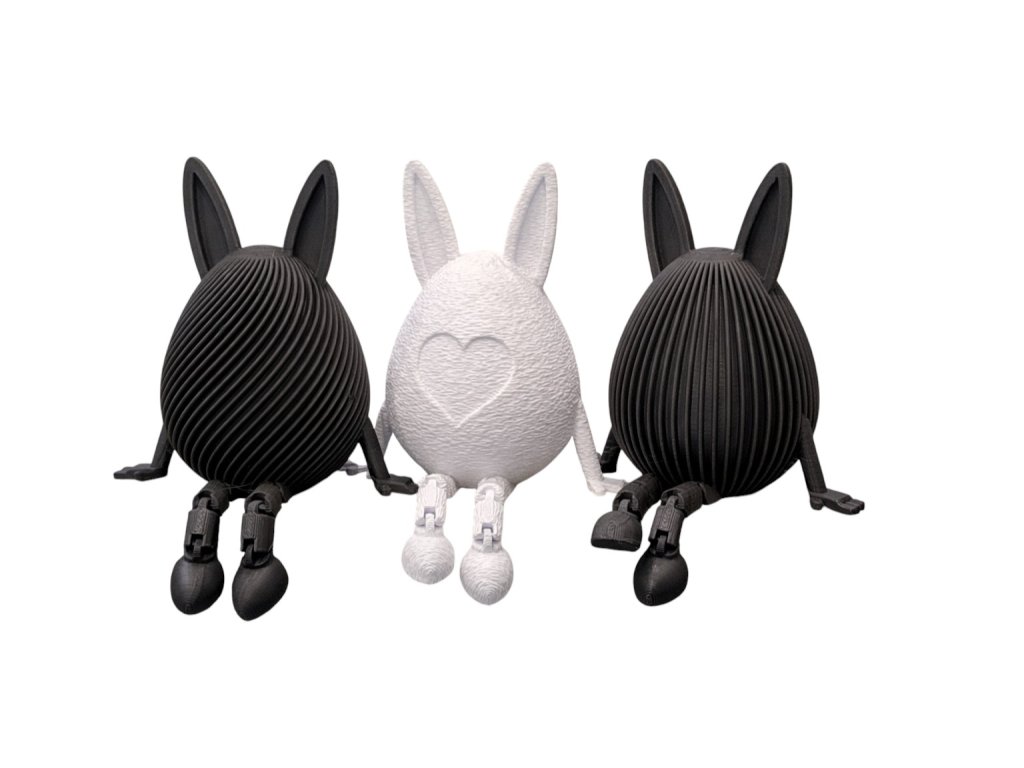 Roztomilá velikonoční vajíčka s ušima a pohyblivými nožičkami v černé a bílé barvě. Originální velikonoční dekorace, která rozzáří každý interiér a vykouzlí úsměv na tváři.
