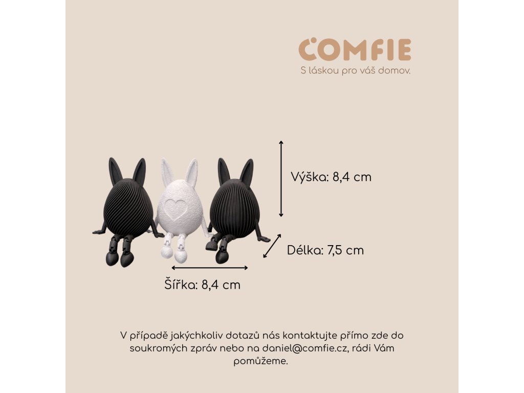 Rozměry každého vajíčka jsou 8,4 × 8,4 × 7,5 cm, takže jsou dostatečně výrazná, ale zároveň decentní. Velikonoční vajíčka s ušima od značky Comfie přinesou do tvého domova radost, hravost a jarní atmosféru.