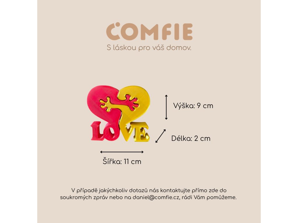 Comfie je značka, která vnáší do domova pohodlí, styl a radost z maličkostí. Zaměřujeme se na originální bytové dekorace, dárky a doplňky, které mají nejen krásný design, ale i duši. Každý produkt v naší nabídce je pečlivě vybírán tak, aby potěšil oko, rozehřál srdce a dotvářel atmosféru domova, kde se cítíte opravdu dobře.
