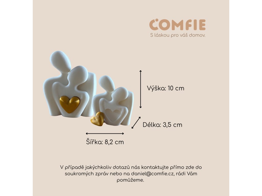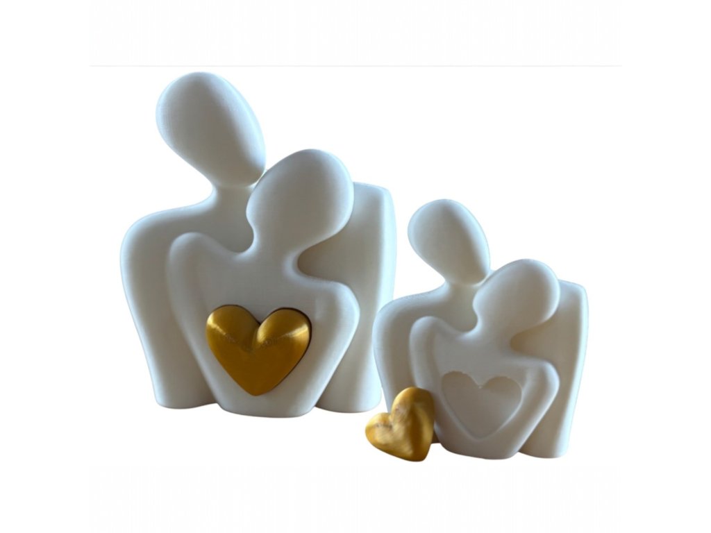 Elegantní soška dvou zamilovaných postav s vyjímatelným zlatým srdcem. Symbol lásky, blízkosti a výjimečných okamžiků. Ideální valentýnský dárek pro partnera, partnerku nebo novomanžele.