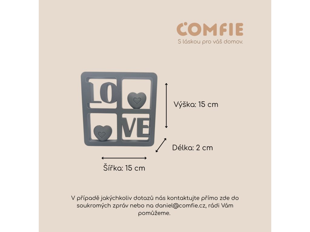 Comfie je značka, která vnáší do domova pohodlí, styl a radost z maličkostí. Zaměřujeme se na originální bytové dekorace, dárky a doplňky, které mají nejen krásný design, ale i duši. Každý produkt v naší nabídce je pečlivě vybírán tak, aby potěšil oko, rozehřál srdce a dotvářel atmosféru domova, kde se cítíte opravdu dobře.