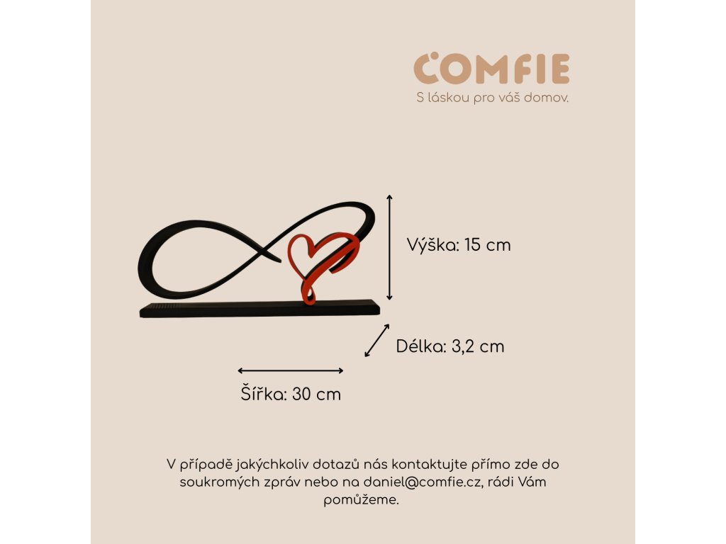 Valentýnská dekorace Nekonečno se srdcem je nadčasovým symbolem lásky, která nemá začátek ani konec. Jemné linie nekonečna v kombinaci s výrazným červeným srdcem vytvářejí harmonický celek, jenž vyjadřuje hluboké city, spojení dvou duší a trvalý vztah.