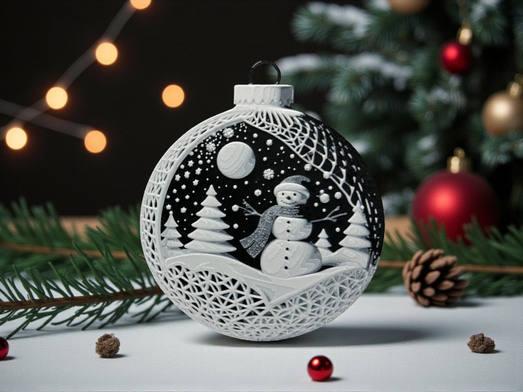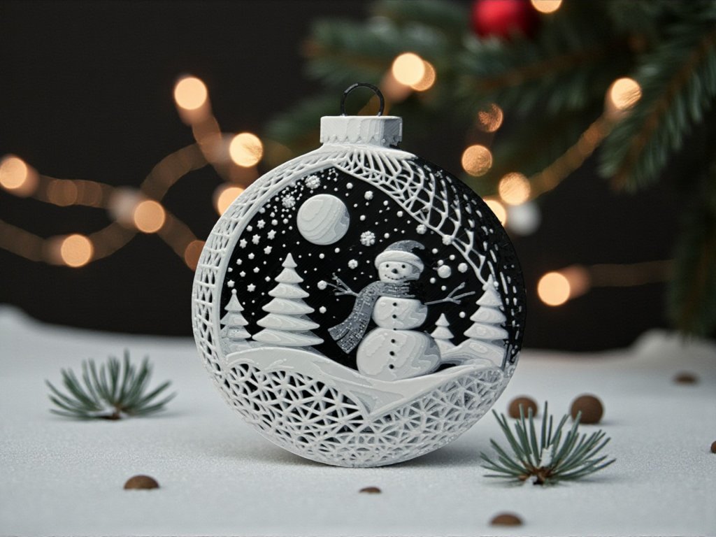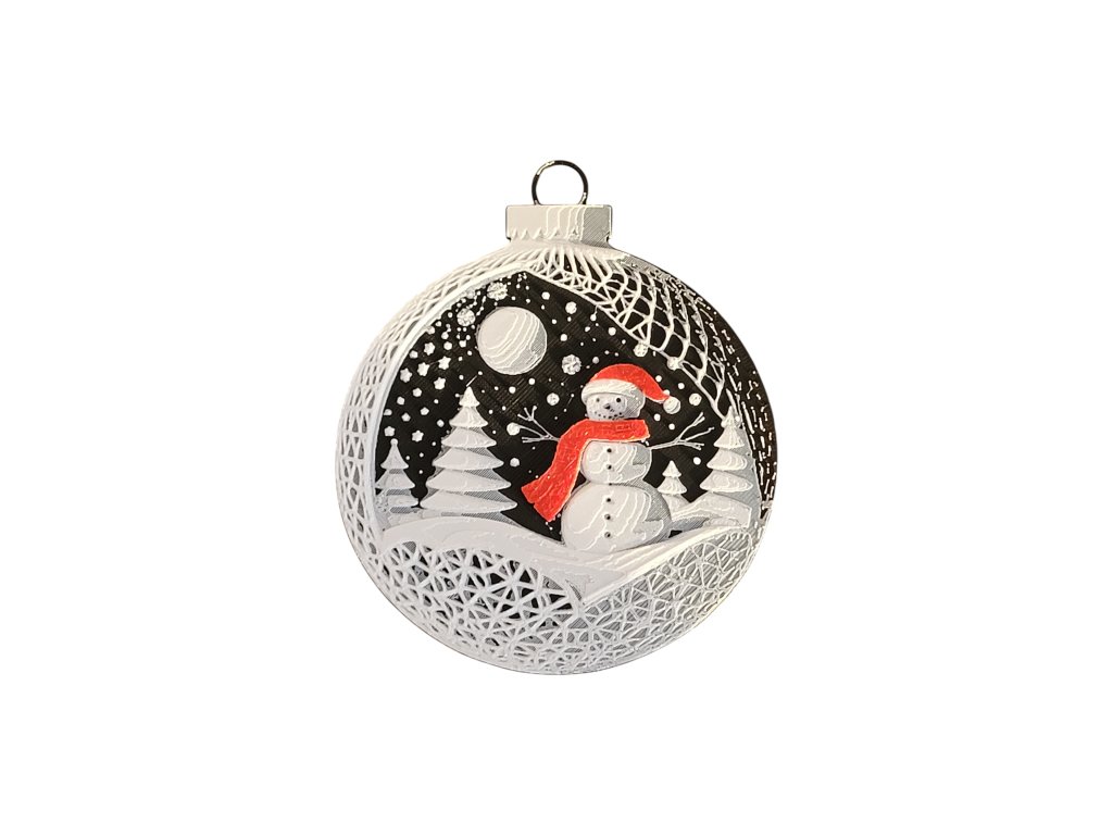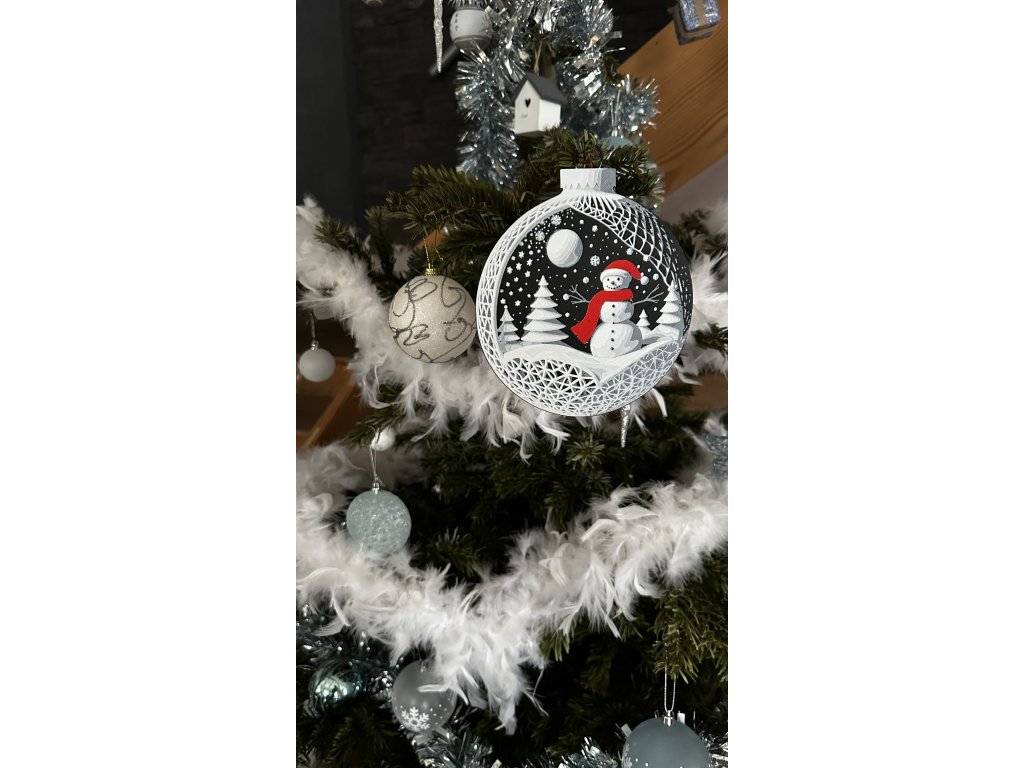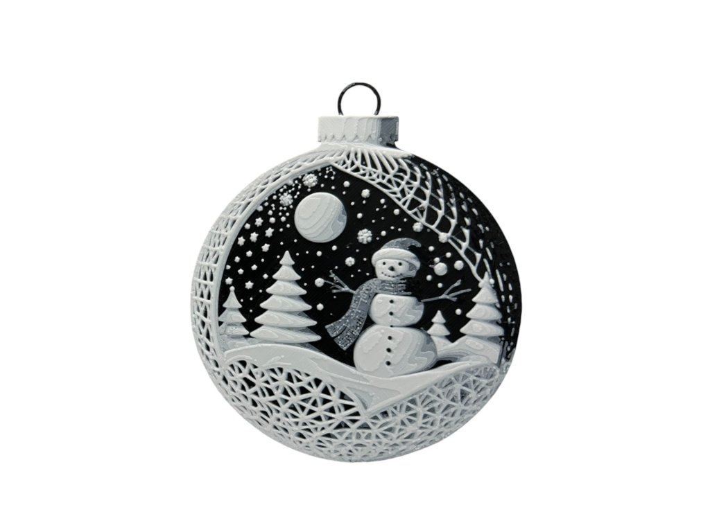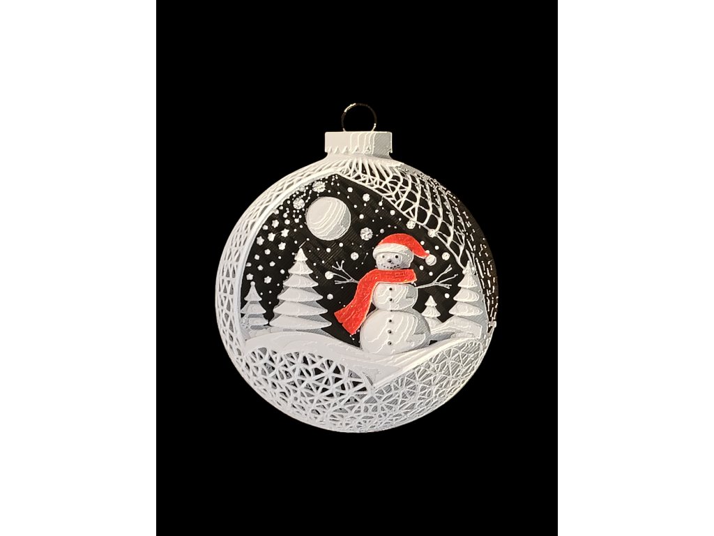 Vneste do svého domova kouzelnou zimní atmosféru s tímto elegantním vánočním ornamentem se sněhulákem. Detailní 3D tisk zobrazuje sněhuláka v zasněžené krajině pod hvězdnou oblohou – klasický motiv, který dokonale doplní vánoční výzdobu.