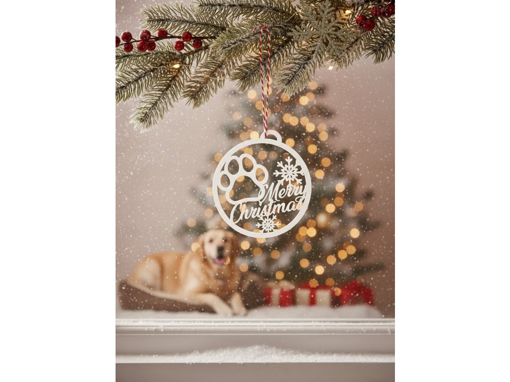 Spojte vánoční kouzlo s láskou ke čtyřnohým přátelům! Tato vánoční ozdoba Merry Christmas se psí tlapkou je ideální dekorací pro všechny milovníky psů, kteří chtějí do své sváteční výzdoby přidat osobní dotek. Ornament můžete zavěsit na vánoční stromeček, záclonu, věnec nebo okenní dekoraci, kde okamžitě vynikne svým jemným, ale výrazným designem.
