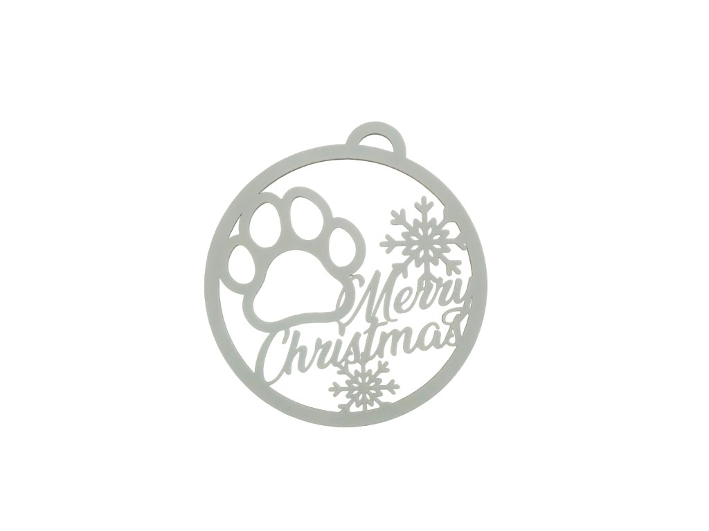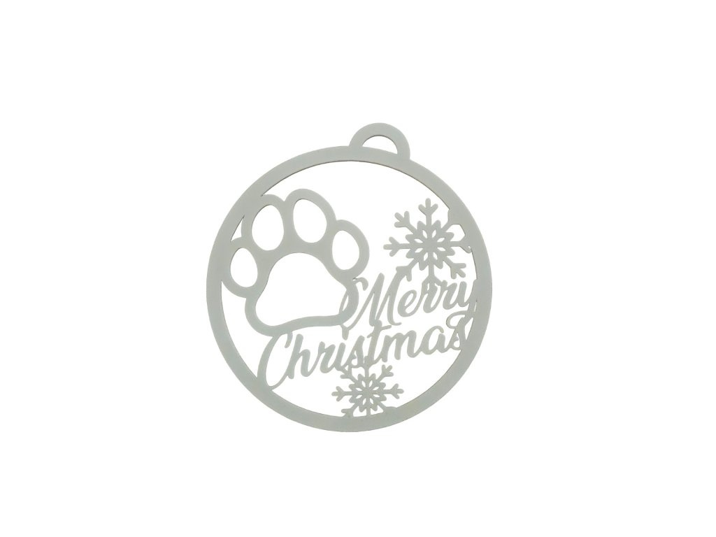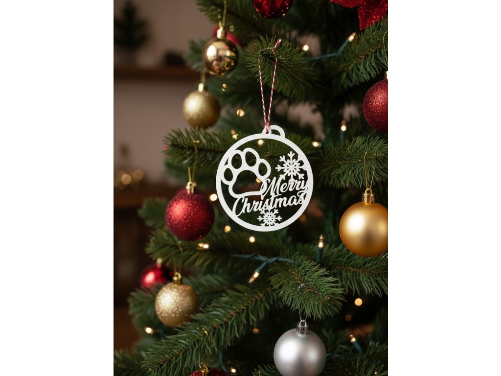 Vánoční ozdoba Merry Christmas se psí tlapkou – 3D tištěný ornament na stromeček nebo záclonu