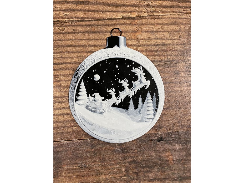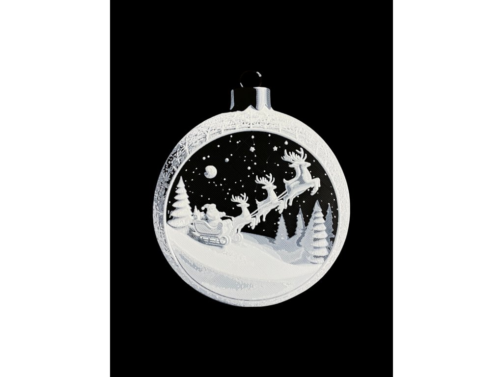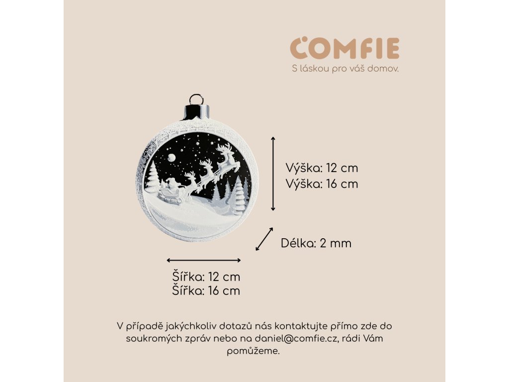 Ozdoba je 3D tištěná z ekologického PLA materiálu, který je lehký, odolný a šetrný k přírodě. Díky preciznímu zpracování vyniknou i ty nejmenší detaily – od Santy a jeho sobů až po hvězdy na noční obloze. Produkt je dostupný ve dvou velikostech – 12 cm a 16 cm. Ideální pro ty, kdo hledají elegantní a originální vánoční dekoraci, která se stane ozdobou každého interiéru.
