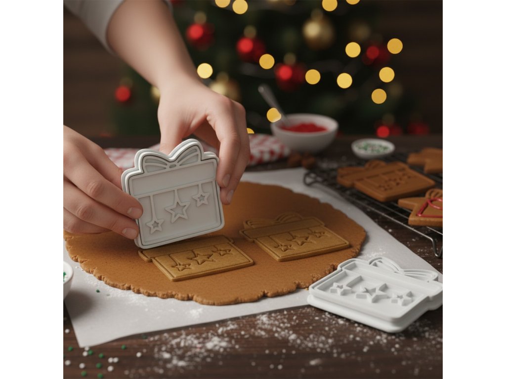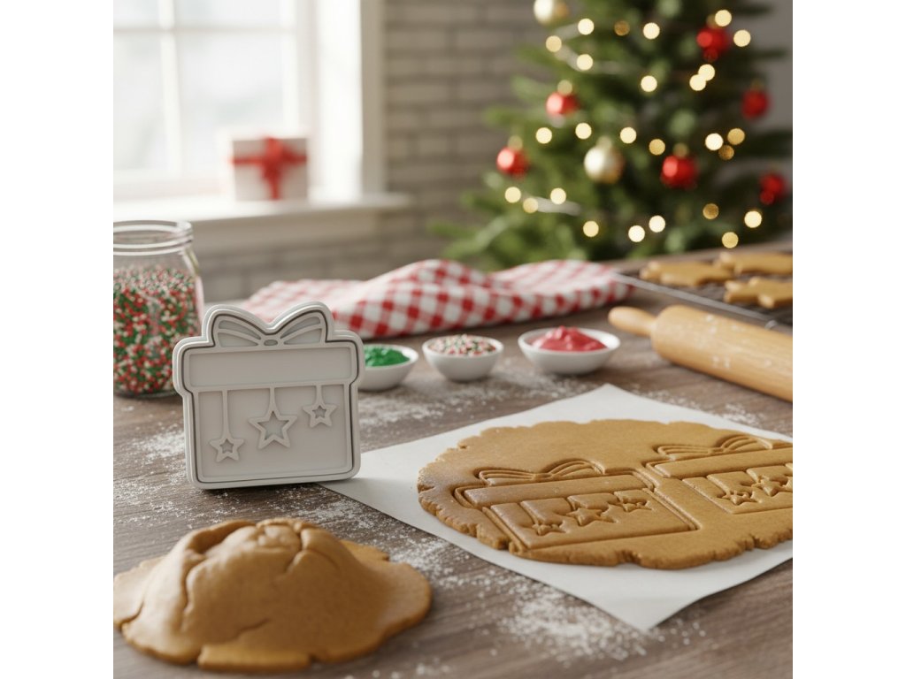 Objevte kouzlo Vánoc s tímto originálním vánočním vykrajovátkem ve tvaru dárku s hvězdičkami, které přinese do vaší kuchyně radost, vůni perníčků a špetku kouzelné atmosféry.