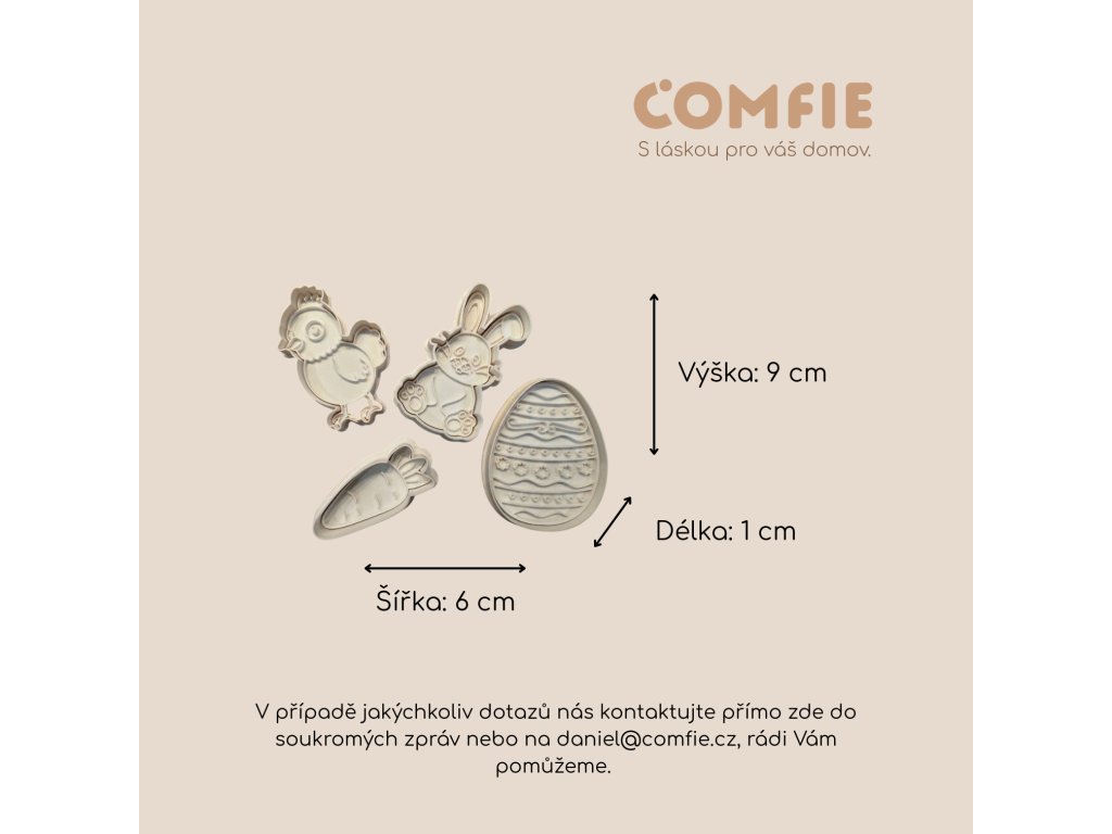 Tato sada je také krásným a praktickým dárkem na Velikonoce – pro maminky, babičky, kamarádky nebo každého, kdo miluje pečení a jarní dekorace. S vykrajovátky od značky Comfie vnesete do své kuchyně hravost, radost a sváteční atmosféru.