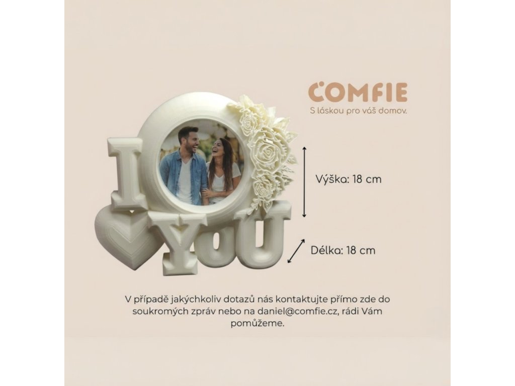 Tento zamilovaný fotorámeček s nápisem „I ❤️ You“ je nádherným symbolem lásky, blízkosti a společných okamžiků. Jemné květinové zdobení dodává rámečku elegantní a romantický vzhled, díky kterému se stane nepřehlédnutelnou dekorací v každém interiéru.